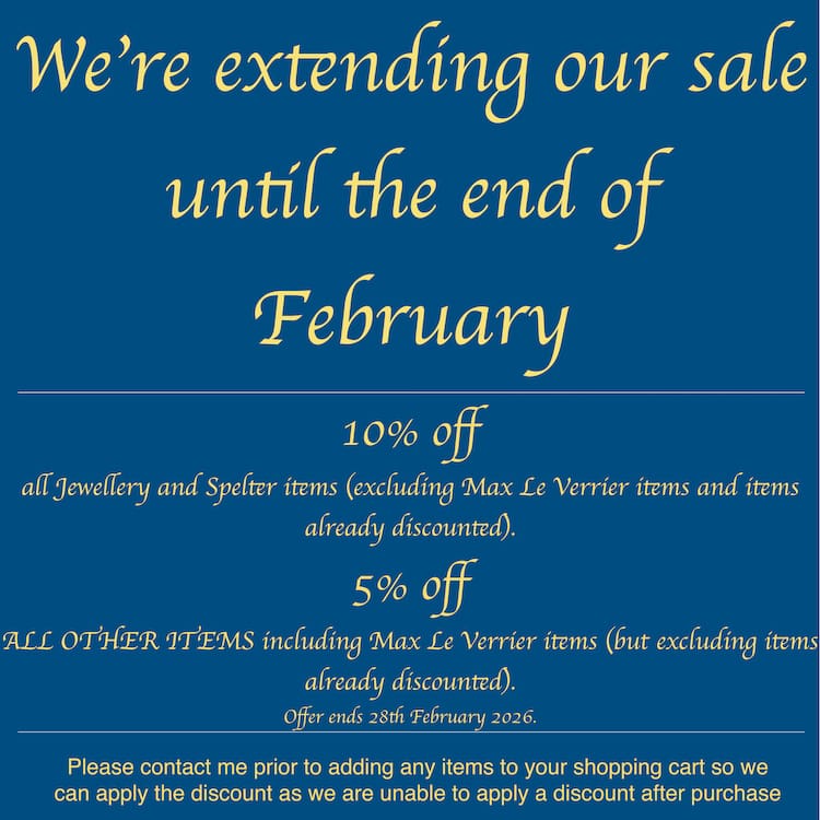 I have been collecting and buying/selling art deco for over 40 years and in doing so have made many, many friends worldwide. Indeed, many of my customers are repeat purchasers.