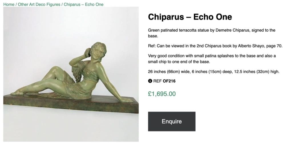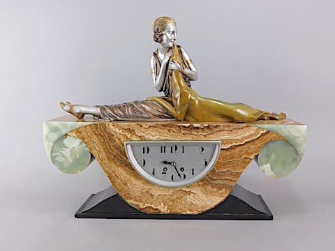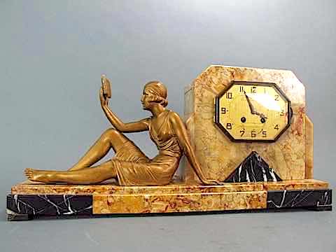 Statues like Echo One, Echo 2, Reader and Coquetry were produced in spelter as figures and also as clocks.
