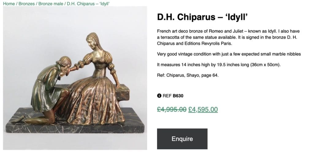 Chiparus sometimes produces spelter statues using a pseudonym – Larcourt, Darcles, Darcourt, Andin and Lullier