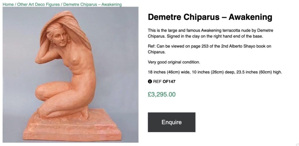 Dreaming was produced in spelter, bronze and as a terracotta. With some terracottas of nudes such as Awakening.