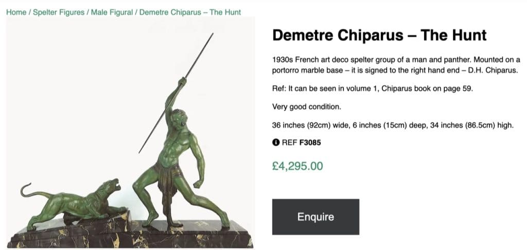 He also produced many male statues that included The Hunter (single male) and the group version with a panther (The Hunt).