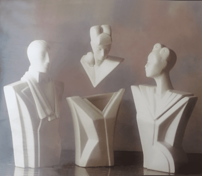 When Lindsey B worked for Adel Rootstien as John Taylor’s assistant she was allowed to create and make some designs of her own. The early designs of a cubist clown and the Louise Tea Garden (LTG) figures are what started her career on the Lindsey B company productions of the early 1980s which were art deco in style and are now highly collectible and desirable worldwide.