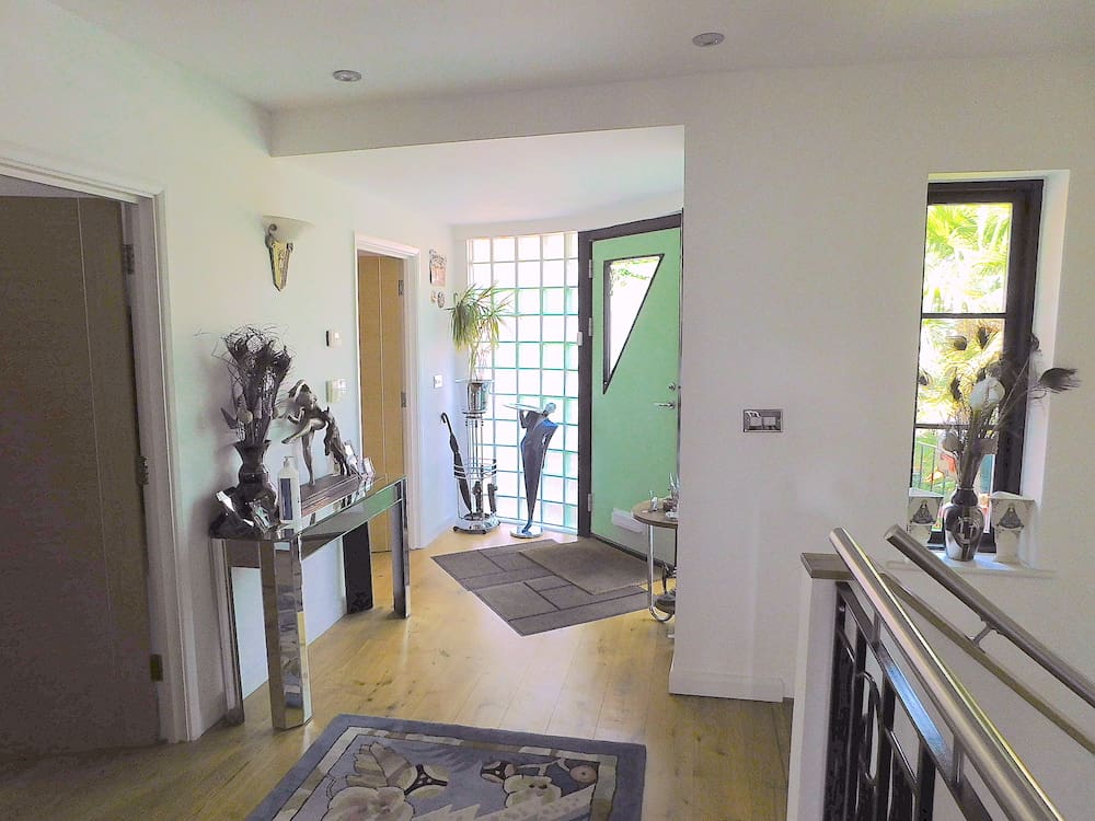 The house was designed by our good friend and architect Jeff Haskins. It is a unique upside down, south facing, custom built house with 5 bedrooms over 2,200sq foot and 3 floors built in 2012. Underfloor heating throughout, integral hoover system with top quality porcelain tiles and engineered wood throughout the house and bathrooms are from Porcelanosa. Three bathrooms plus a ground floor cloakroom. Double glazed aluminium windows throughout and off street parking for up to 5 cars.