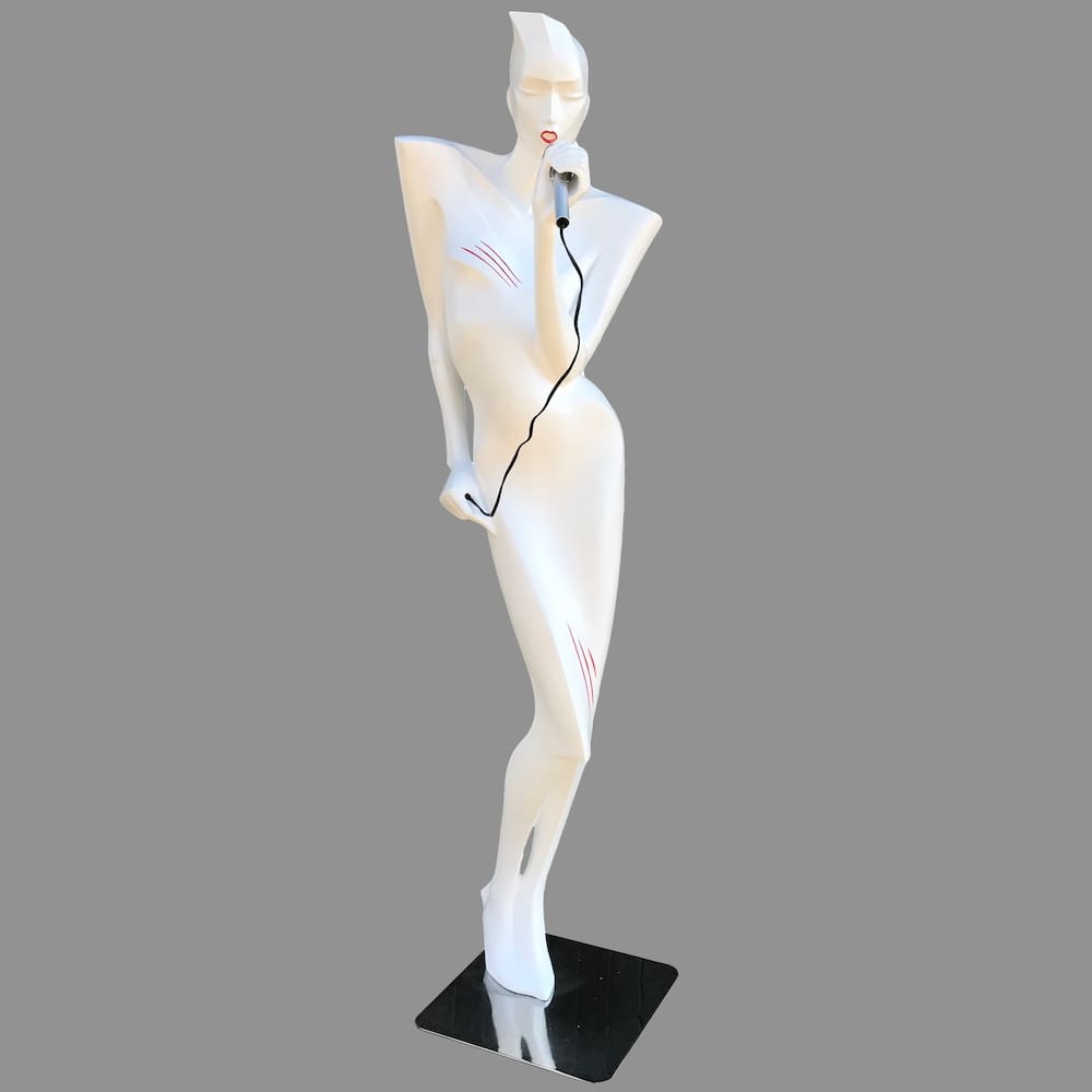 Our Pearl (to the left) and the original advertising sheet for Pearl printed in 1985. We’ve also seen a photo of a Pearl on the facade of a building. According to Lindseys partner Ivan, the figure was displayed above a strip club.