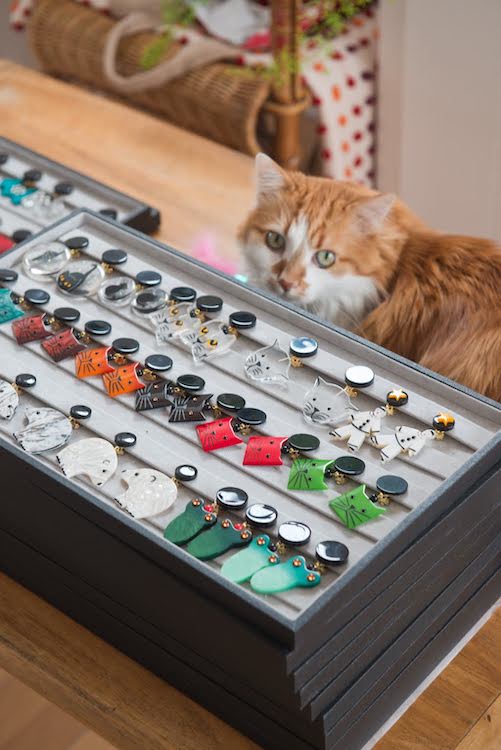 Quality assurance of a selection of earrings by Marie-Christine’s cat.