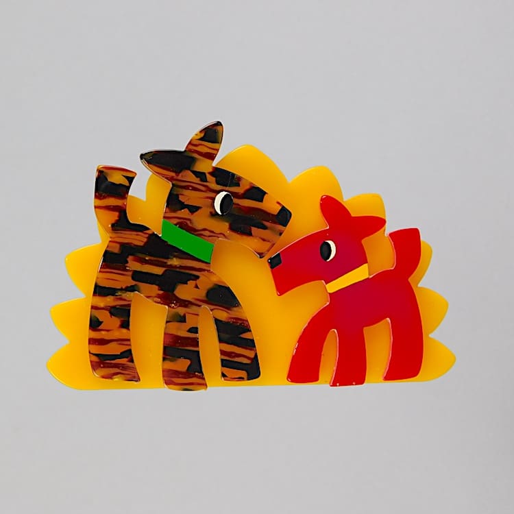 Pavone jewellery is very good value for money in my opinion, more so than some of the other brooch artists as her items are hand made by Marie-Christine herself from original 1920s – 1930s galalith, bakelite and lucite, but mostly Galalith.