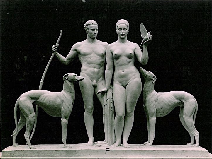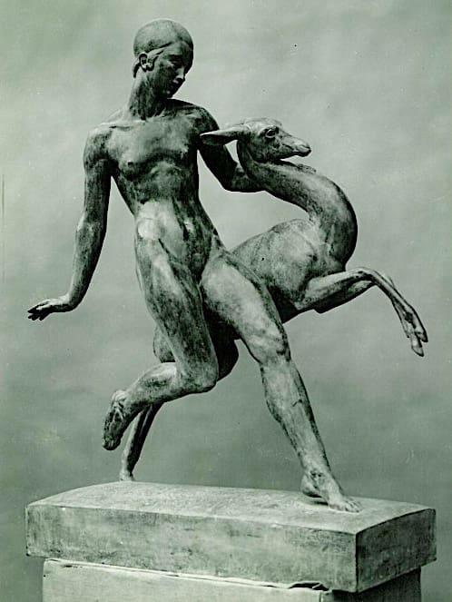 1935 – Diane et ses Compagnes poursuivant Actéon (Diana and her companions pursuing Actaeon), a gilded bronze sculpture which was exhibited at the Salon of Decorative Arts in Brussels and the Salon of French Artists.