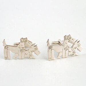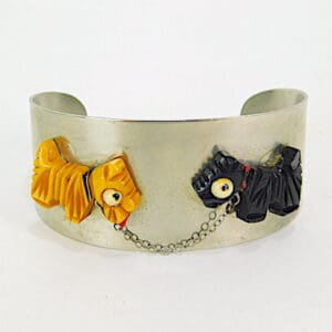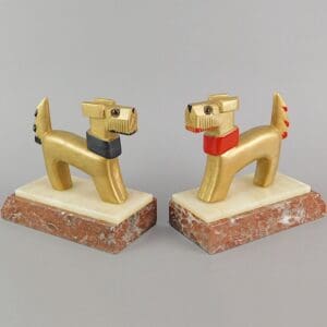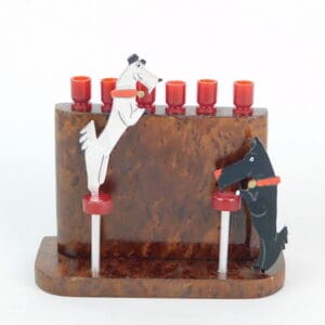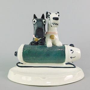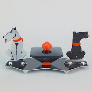 There was a big following for Ric and Rac items and many commercial items were produced. These included bookends, powder bowls, table lamps, clocks, picture frames, a shoe polish tin, and other tin ware, brooches, bangles, soft toys, car mascots, pictures and posters – showing the naughty terrier dogs.