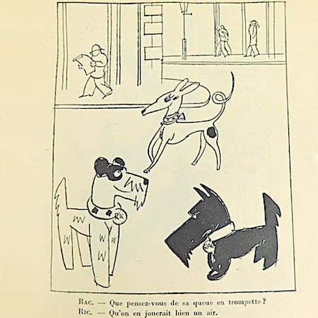 Ric and Rac books – named Pas Pour Jeunes Filles, which were the musings and philosophies of the canine duo, illustrated by Pol, were albums aimed mainly at adults as some of the dog’s comments were very racy – especially for the 1920’s. Grand Hebdomadaire Pour Tous were advertising the Ric and Rac albums in the magazine at 2.50 francs each in 1942.