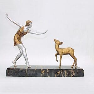 For instance in the Group Atalante statue, the Diane was designed by Bouraine and the leaping deer was by Max Le Verrier – hence it was signed De Marco.