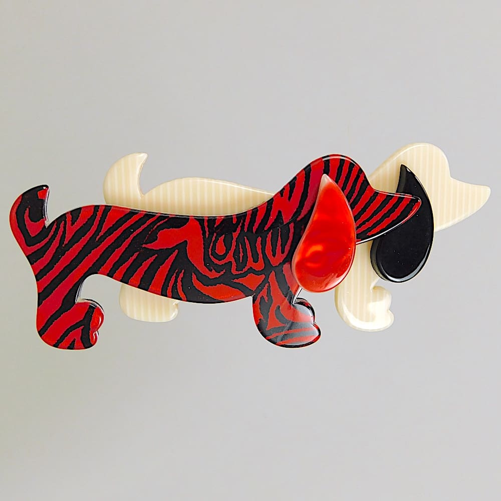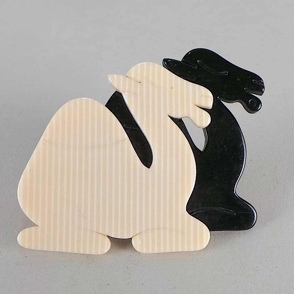 Sadly, as with many highly sought after items, a large number of fake Lea Stein brooches have hit the market in recent years. At time of writing they are quite easily identifiable as the quality compared to a genuine Lea Stein is lacking and leaves a lot to be desired however it is expected the quality of the fakes will soon catch up and could make identification of fakes much harder.