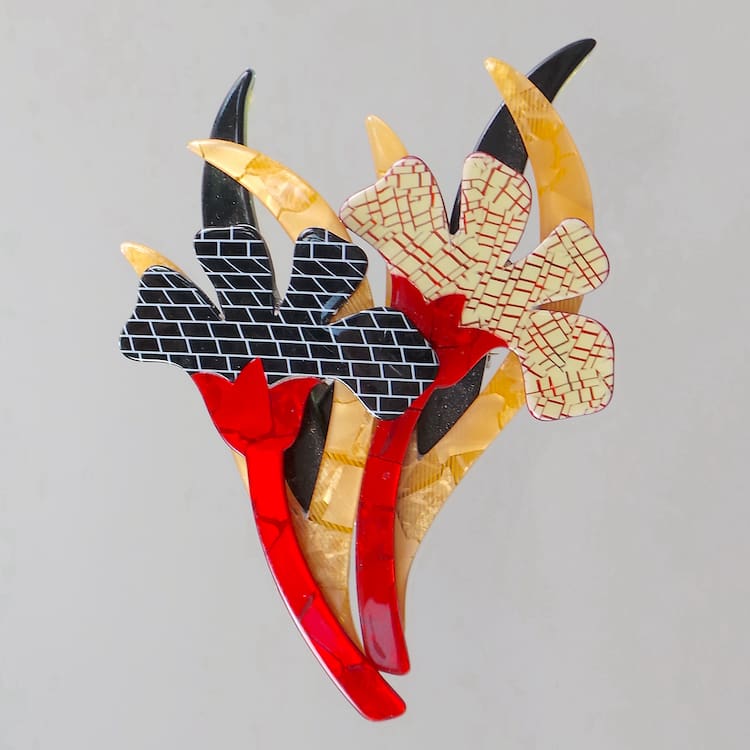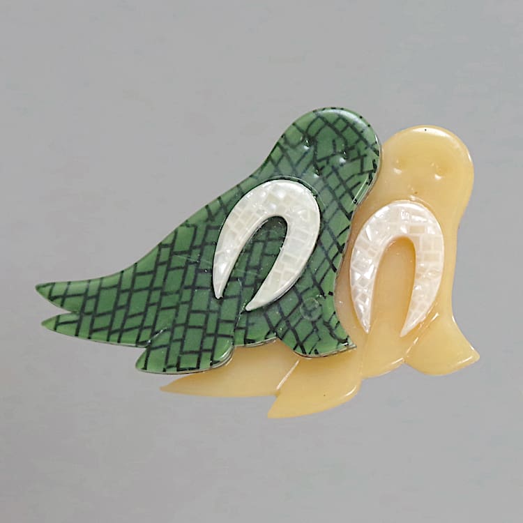 From designs of Animal and Flora brooches to buttons, boxes and mirrors, Lea Stein worked in 2 eras, the first often referred to as her Vintage period was from 1969 – 1981 and the modern period started in 1991 after huge demand was placed on Lea Stein for more brooches.