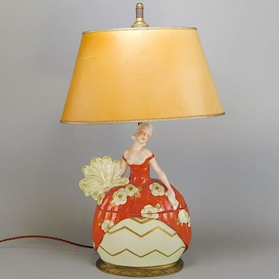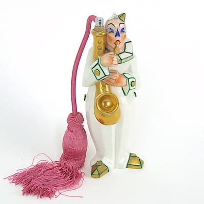 So what do we actually know of Aladin? We know Aladin made ceramic items in Paris and the items he produced include; Inkwells, Night Lights, Perfume Lamps, Perfume Atomisers, Flacons, Lamps, Powder Bowls, Wall Masks, Pots and Biscuit Boxes. We know Aladin worked in the late 1920s and through the 1930s. In addition to simply signing the items “Aladin”, Aladin items could also be stamped with Aladin Luxe or A.L. With very few exceptions (from our own experience anyway), nearly all Aladin ceramic items contain depictions of people.