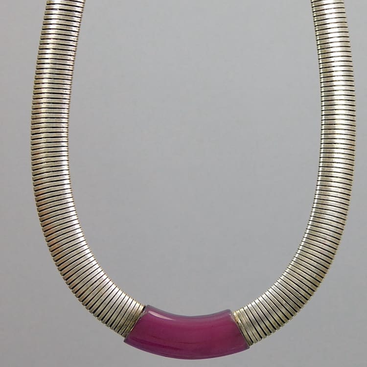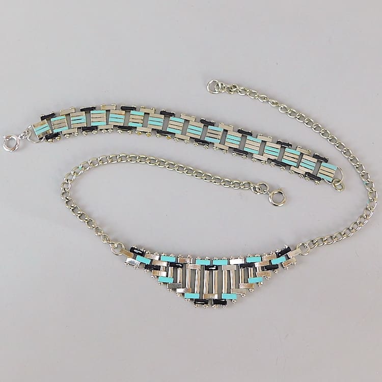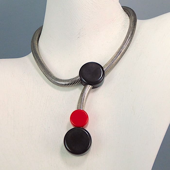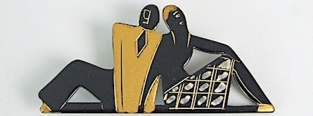 Famous for his art deco jewellery items made mainly from chrome and galalith, otherwise known as Schmuck. His company was based in Idar-Oberstein Germany and his designs are famous for their Bauhaus modernist styling. Galalith has been described as a synthetic material with unlimited possibilities and jewellery was certainly one of them, it was also used for buttons and boxes and many other items. It is made from a resin produced from casein milk and formaldehyde. Gala – is greek for milk and lithos – is stone hence the name Galalith.