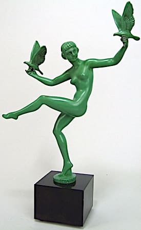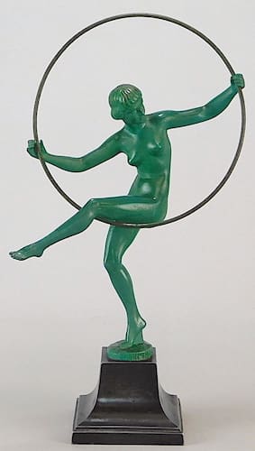 Pieces signed Briand were produced by the Le Verrier foundry in Paris during the deco years – ie. the famous bird lady and hoop lady (shown, right), and I now know that Briand was a pseudonym used by Marcel Bouraine who already used other pseudonyms – Derenne and Denis.