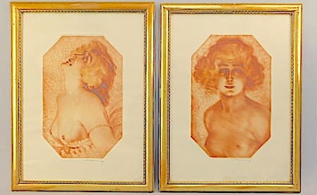 After the end of the First World War he turned more to both Expressionistic and Art Deco concerns. At this time Max Bruning’s art dealt almost entirely with the many elements of eroticism. During the 1920’s his watercolours were reproduced as ‘naughty’ postcards and imagery for advertising. He dedicated his more serious talents, however, to the creation of original etchings and drypoint engravings, some of which were finished with extra layers of colours applied by hand.