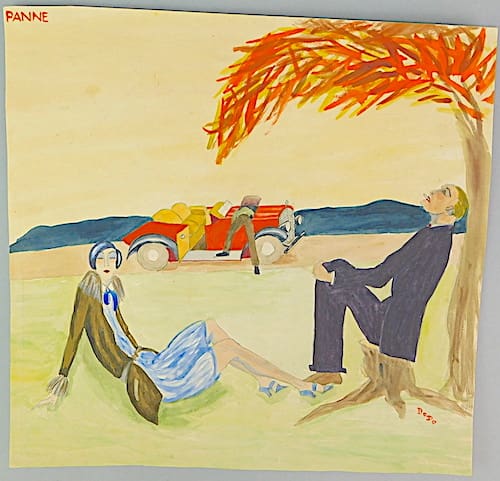 A Frenchman considered by many to be one of the most significant artists of tour era, his paintings resurrect the spirit of the 1920’s. His first exhibition was in 1911 and his range was wide. He illustrated books for adults and children, costumes for the theatre, ballet, cinema and fashion magazines and calendars. He was a member of the Societe des Artistes Decorateurs and also designed jewellery, glass, fabric and wall paper. He was also a writer and wrote essays for the Gazette du Bon Ton between 1915 – 1925. He lived a short life and died in 1932 at the age of 50.