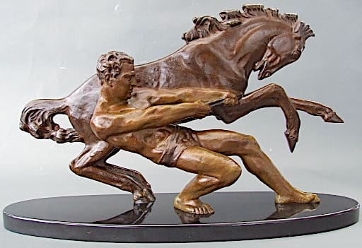 Exhibited at the Paris Salons from 1912 – 1914 and was only 29 when he died. Many of his statues tended to be equestrian themed as is the case with his large Ride of the Valkyrie statue where the horse and lady rider are flying through the air.