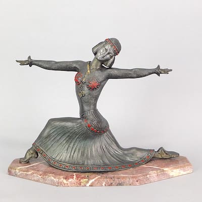 Austrian artist, produced many early 20th century pieces of mainly Arab influence or subject. Also produced mechanical figures. The most famous of the Viennese ‘cold painted bronze’ artists Franz Bergman delighted in producing Oriental and animal subjects. Recognised for his great attention to detail and wonderful vibrant colours, Bergman had a distinctive signature either a ‘B’ in a vase shape or ‘Nam Greb’ which reads Bergman in reverse. It is said that he used these marks as a ‘nom de plume’ as the subjects of his work were often unquestionably erotic and not to the taste of his family.