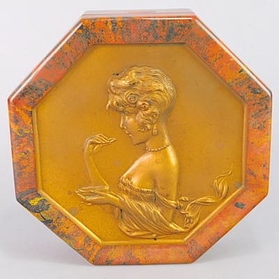 Bouraine used three pseudonyms which were Derenne, Denis and Briand (his mothers maiden name) and he sometimes signed his pieces A. Bouraine, using his middle name – Andre. These names were used mainly on the non-bronze art metal pieces that were produced by his life long friend and foundry owner – Max Le Verrier. Both Le Verrier and Bouraine were life long friends with Pierre Le Faguays and they all frequently worked together. They all studied together at the Beaux Arts in Geneva.
