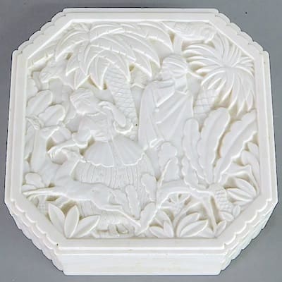 Bakelite was the first synthetic plastic. Because of its durability and beauty its uses seemed endless, and it grew in popularity very quickly. Everything from electrical plugs, car dashboards, early radios and ornate jewellery were made from bakelite. It could be produced in a wide array of colours, but most common were white, brown, green and red. As a result of this invention, Dr Baekeland is seen as the father of the present plastic industry; costume jewellery from the 1920’s-1940’s bakelite era is now highly sought after.