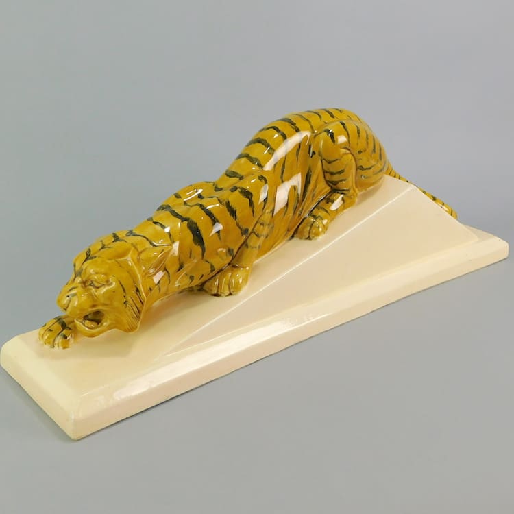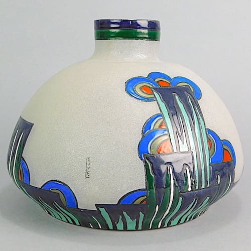 The factory was then run by his wife until 1949. Pieces are marked either with the two wings, each with an ‘L’ – a play on words in French – deux ailes – two wings and two ‘L’s, or with the stamp of a running female wolf. The original Lourioux factory was bought by the Philippe Deshoulieres group, another ceramics designer, and is now run as a museum.