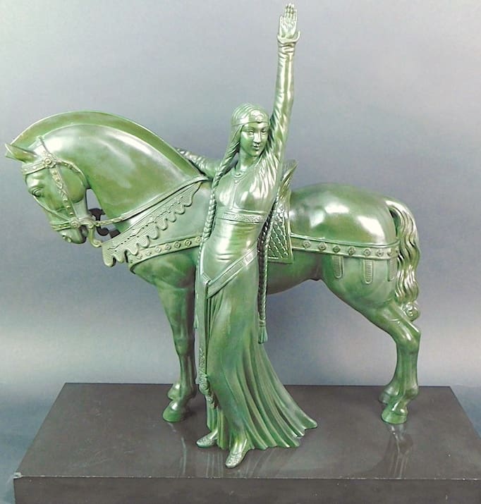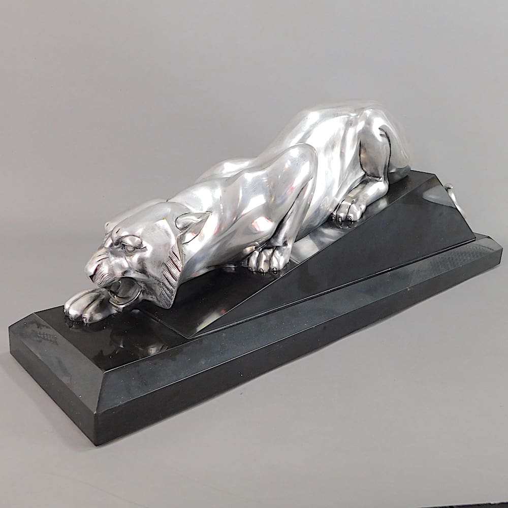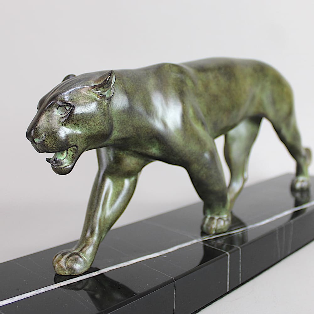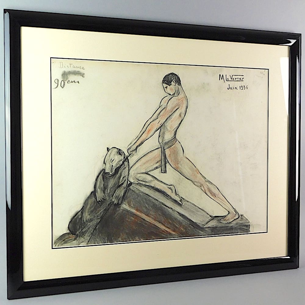 He won a gold medal from the Salon in 1925, this period was known as his animal period when he produced many lions, panthers, horses, monkeys, squirrels, hippos, dogs and birds. Most of the Le Verrier pieces were produced in the company’s secret formula metal that they called ‘art cast’. It is a grey metal often confused as bronze due to its weight and quality. The moulds were designed by Max Le Verrier himself. Some bronzes were also produced and so were some ceramic and terra-cotta pieces, each sculpture being hand finished.