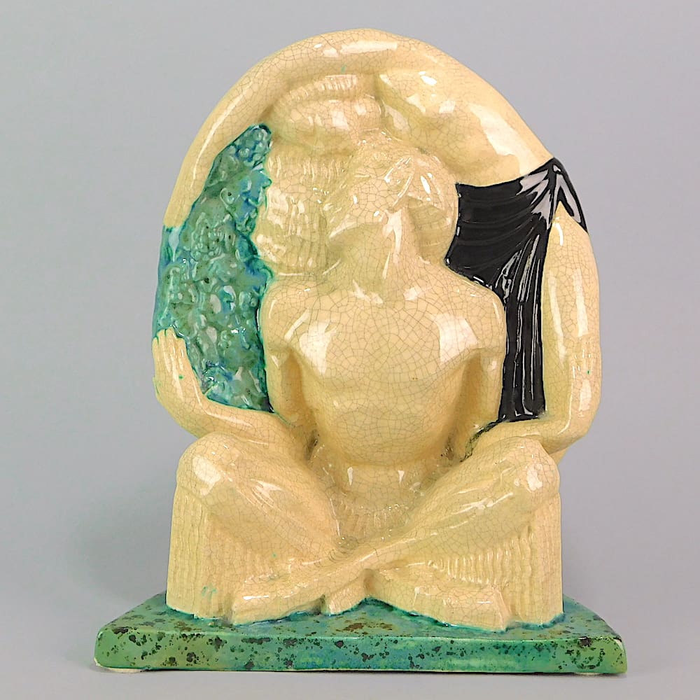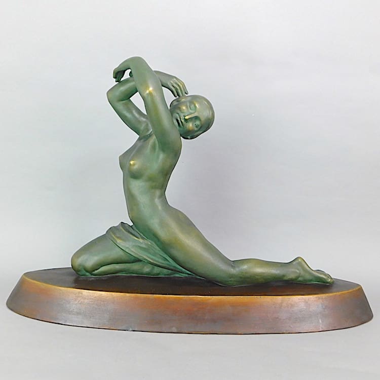 Le Faguays was a leading sculptor and his work is frequently praised for its high quality and attention to anatomical accuracy. He also produced designs for Goldscheider in Paris under the ‘La Stele’ label. He worked in several mediums including ivory, bronze, spelter, stone, wood, alabaster and ceramics.