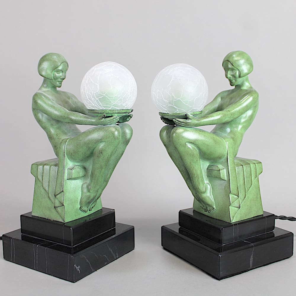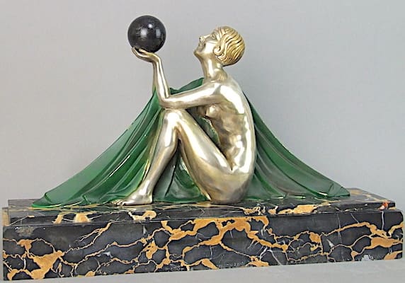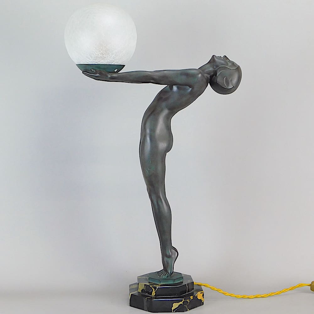 Le Verrier is in my opinion one of the best sculptors of the art deco years. Probably his most famous piece is ‘Clarte’ the nude lady lamp (produced in 1928) which came in 4 sizes – the largest being life sized – each has a different name. As is the case with many artists he may have used as many as 6 different models for each statue to produce what he saw as the perfect woman.