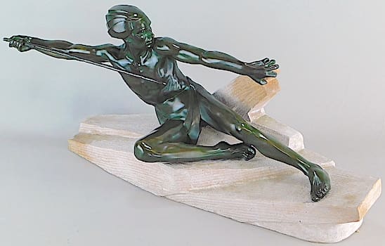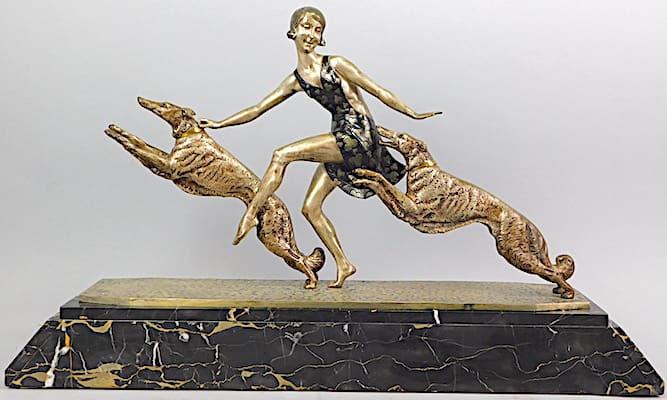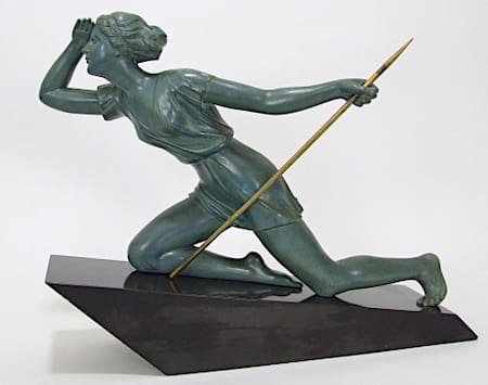 Max Le Verrier appears to have been very particular who he would produce pieces for and their standard of work had to be as high as his own, as all of the Le Verrier foundry items are of exceptional quality and bear a similar stylisation. Statues were produced in different forms and sizes. For example the large ‘Group Atalante’ by Demarco was produced in a large and a smaller version both had a lady and a leaping gazelle on the base. The same De Marco lady was produced on her own without the gazelle, in a large and small size and it was called ‘Atalante’.