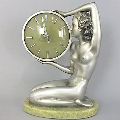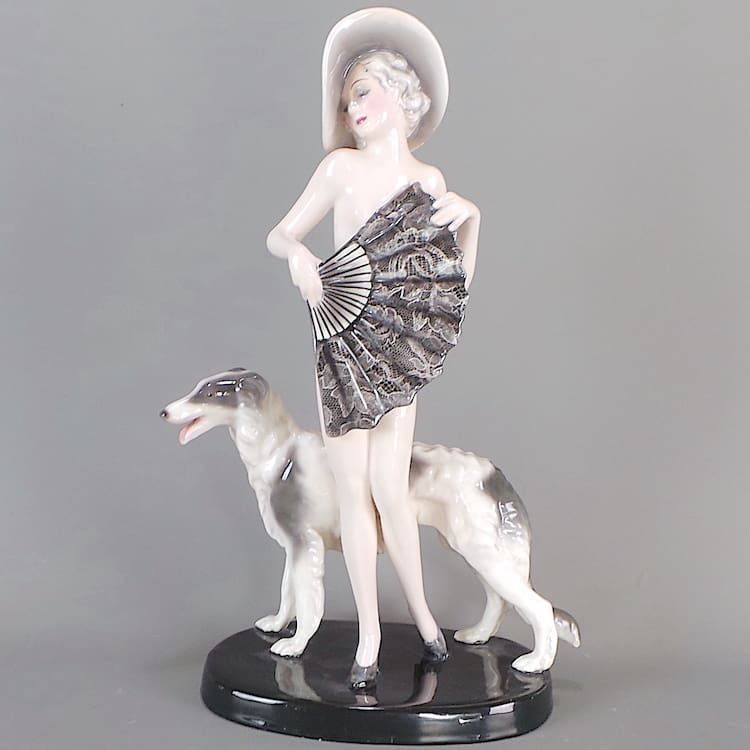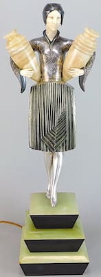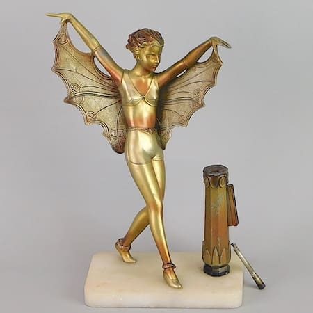 Josef Lorenzl was an Austrian sculptor and ceramist and one of the most famous sculptors of the Art Deco period. Most of his figures were singular slim female nudes with long legs which conveyed elegance, usually in dancing poses. Some of his figures were used to accompany mirror glass or marble clocks, lamps and also produced as bookends. He also made many figural strikers (lighters) mainly in spelter wall masks and ceramic figures.