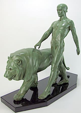 After serving in the war he studied at the Beaux Arts in Geneva furthering his talent for art work and sculpture. He studied along side the now famous sculptors Pierre Le Faguays and Marcel Bouraine who became his life long friends. He was later to produce many pieces for them at his Atelier in Paris, which he opened in 1919. Here he produced his very first commercial sculpture ‘The Pelican’ which was to be the first of many wonderful pieces of his vast and very versatile collection of statues. His foundry also produced the works of other artists like Fayral and Guerbe (pseudonyms used by Le Faguays), Le Faguays, Derenne and Briand (pseudonyms used by Bouraine), Bouraine, Masson, Charles, Becquerel, Janle, Denis, De Marco, Garcia.