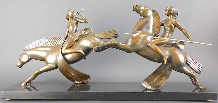 Many of the statues were produced in two different sizes. Often the same subject would be produced as both a statue and as a lamp. His work was very versatile and showed amazing movement.