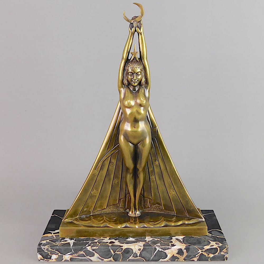 A renown French sculptor mainly known for top quality bronze female figures, possibly gilded, often naked or sheathed in drapery. He produced a series of well known figures based on the American actress and dancer, Loie Fuller who was regarded as a living embodiment of Art Nouveau.