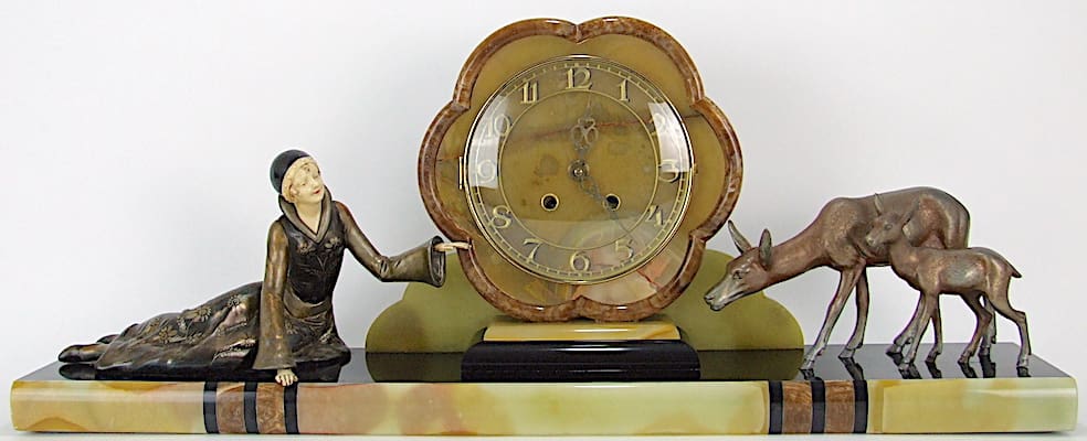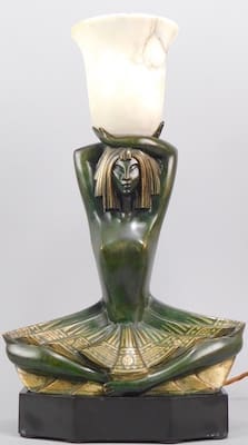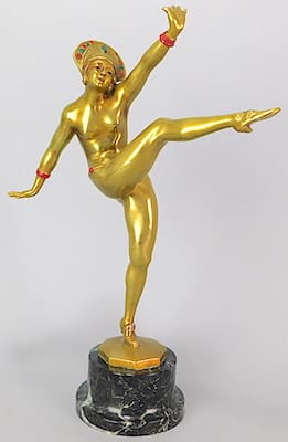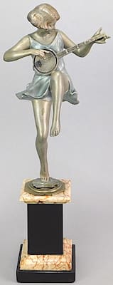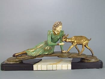 His designs which were mainly ladies or girls were used to produce figural lamps and clocks as well as groups and statues on their own. Most famous piece was the running lady with two greyhounds.