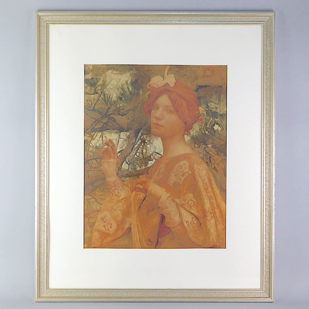 He also painted fashionable portraits such as Woman with an Orchid (1900 Paris) and Impressionist landscapes. Though he participated in the avant-garde Salon de la Rose + Croix between 1895 and 1897, Maxence exhibited successfully at the conservative Salon des Artistes Francais from 1894 to 1939 and frequently served on its committees and juries. Maxence’s work changed little in style and content after the turn of the century and, despite the condemnation of progressive critics, continued to enjoy strong middle-class patronage until the late 1930’s.