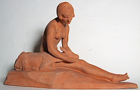 The Goldscheider foundry in Paris produced many of her bronzes and ceramic pieces although the publisher Albert Buisson of Editeur d’art also produced her works. Her statues are now highly sought after as they are very modernist in style.