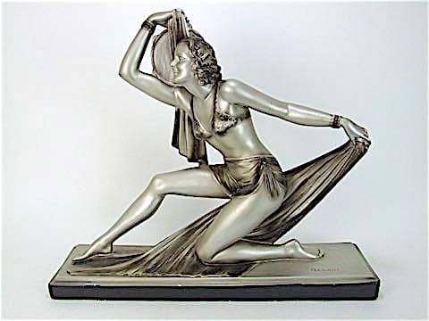 There are also two other names that occur on some of the ivorine and spelter statues in the style of Menneville/Cipriani and they are Roggia and Deviggo. Were these also pseudonyms used by Cipriani? After all it was a common practice with many of the statuary artists during the deco years to use other names. For instance – Le Faguays used Fayral, Bouraine used Derenne and Briand on his non-bronze statues and many other artists also used pseudonyms. Please see my information on Cipriani for dates etc.