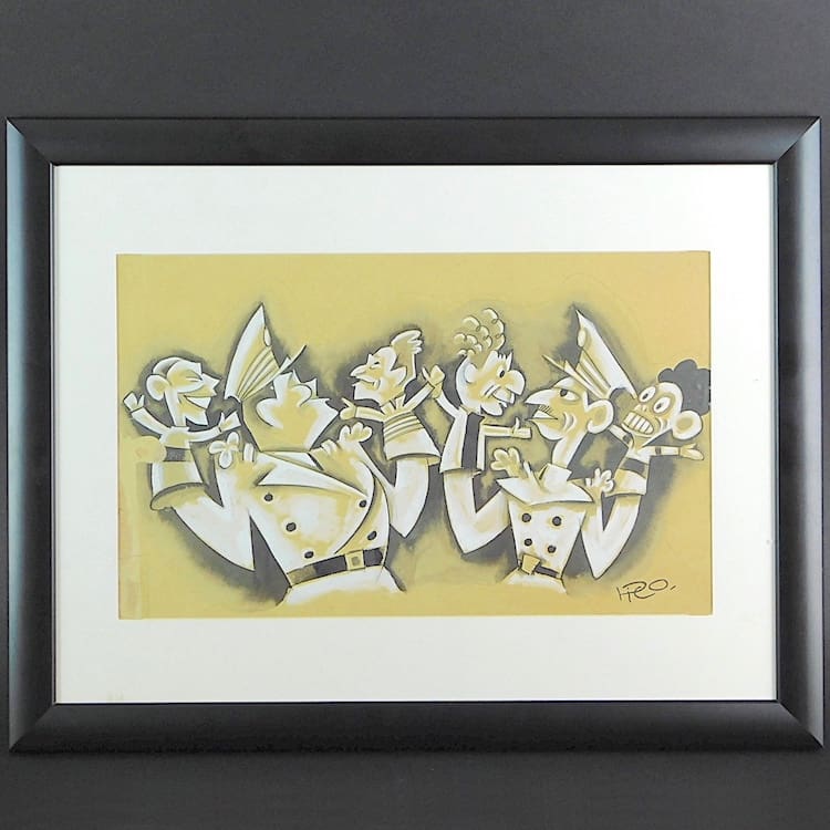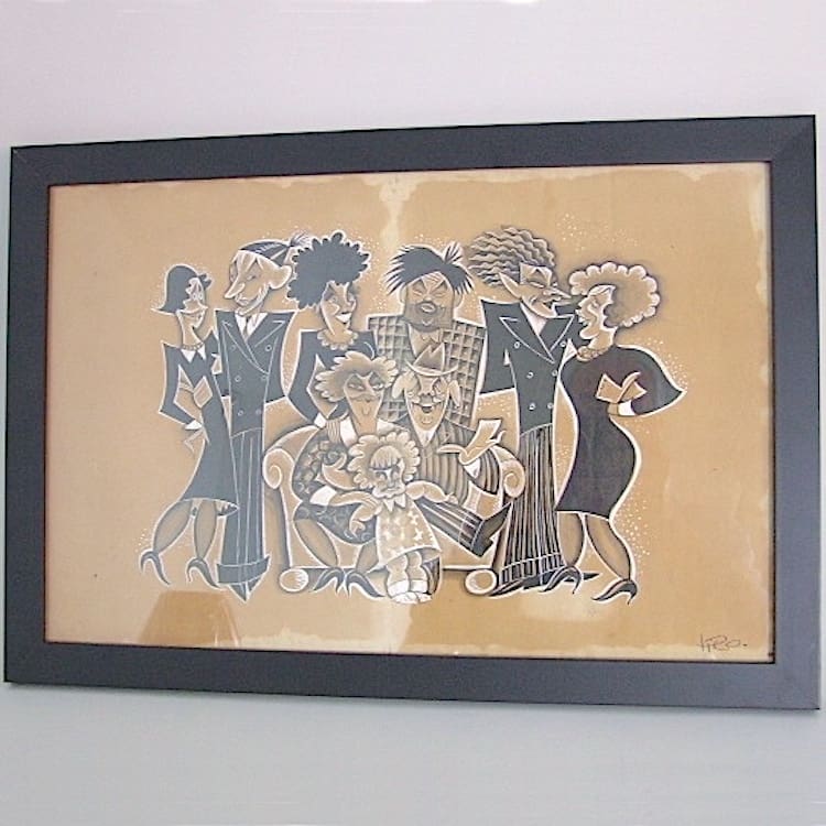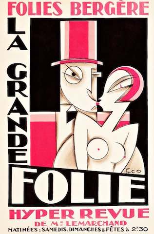 Also signed his name as Maurice Pico or Pico, his real name is Maurice Picaud and he was a French, multi talented architect, designer and painter. He trained at the Ecole Boulle and worked for the Ruhlmann furniture company, and also distinguished himself as a newspaper cartoonist putting his talent to among others, Science and Life, Sports, Auto, Le Matin, etc. Some of his creations, typical of the Art Deco period are visible to all, like the dancing lady facade over the entrance to the Folies Bergeres building in Paris which depicts the dancer Lila Nikolska, who posed for the sculpture, and the murals inside the Hotel de Ville and the Council Chamber of Montdidier (Somme).