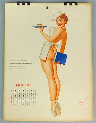 He made a return to Esquire with a new calendar in 1955 and produced a famous calendar for Ridged Tools in 1953. He also designed the car mascot for Nash automobiles in 1954 and 1955.