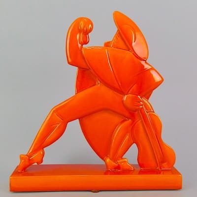 “Roland Paris does not fall into the usual category of Art Deco decorative works. His art cannot be categorised as decorative nor pleasing to the eye. On the contrary, it is full of criticism of society. He lived and worked in Berlin during the interwar period. Critical of the Fascist era in which he lived, he always cleverly avoided censorship. His subjects were grotesque, vivacious and above all caricaturesque. The media in which he worked – sculpture, paintings, woodcuts, porcelain and prints – were as varied as his subjects – dancers, mayors, judges and kings. However by far his most frequent characters were jokers, jesters and devils. He admired the downtrodden, the underdog and the out-of-place characters. Don Quixote, The Flying Dutchman and the Tale of the Frog Prince are some of the subjects that fascinated him” A quote from the book Roland Paris; The Art Deco Jester King by Alberto Shayo.