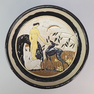 He commissioned established designers to create a range of objects for the discerning interior, from Furniture and Bronzes to Ceramics and Glass. Lallemant, Adnet, Marcel Guillemard and Colette Gueden were among those who produced work for the studio. Objects were produced at factories such as Saint Radegonde and Longwy.