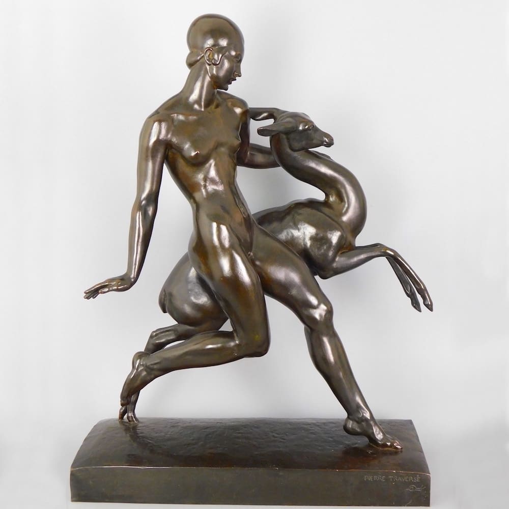 Pierre’s work can be found in the Musee du Petit Palais in Paris and other fine collections held internationally today. He was a sculptor who worked primarily in bronze, stone, and white marble. One of his most well known art deco statues is his Diane and Deer statue named L’Atalante (right).