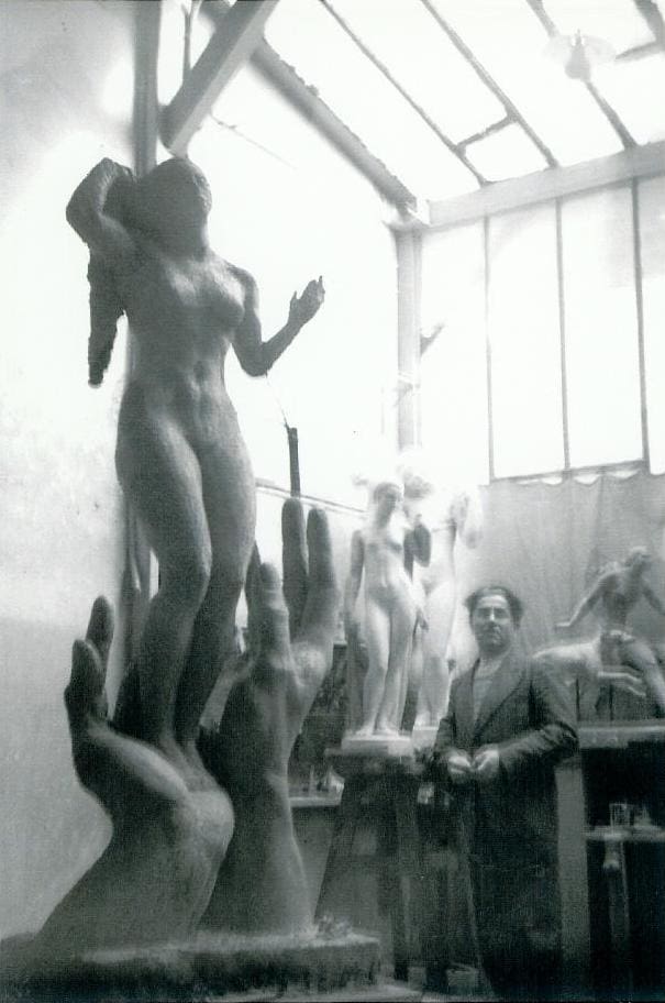 A French sculptor born in March 1897 in Lyon and died July 18, 1956 in Paris. He was a student of Jean-Baptiste Larrivé at the National School of Fine Arts in Lyon, where he obtained the first prize in 1923 followed by the Paul Chenavard prize at the École nationale supérieure des beaux-arts in 1926. During the 1920s he exhibited at the Salon d’Automne in Lyon, reliefs and various topics, nudes, animals in the simplistic line of François Pompon , religious allegories and treated with art stylization close of the Art Deco which prefigures neoclassicism , such as the bust of La Tête de Geoffroy. In 1926 the French government brought from him for the Salon d’Automne in Lyon his statue The Virgin. During the 1930s he designed perfume bottles for Lanvin, and base reliefs for musical and electric companies like Pathe-Marconi and Hohner accordions. He had an atelier in Paris. In September 1943, his workshop at 5 rue Jean-Ferrandi in Paris was totally destroyed by a bomb targeting the Montparnasse station . All works from this period are destroyed. Many or his works are in public collections.