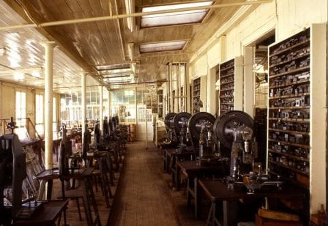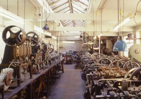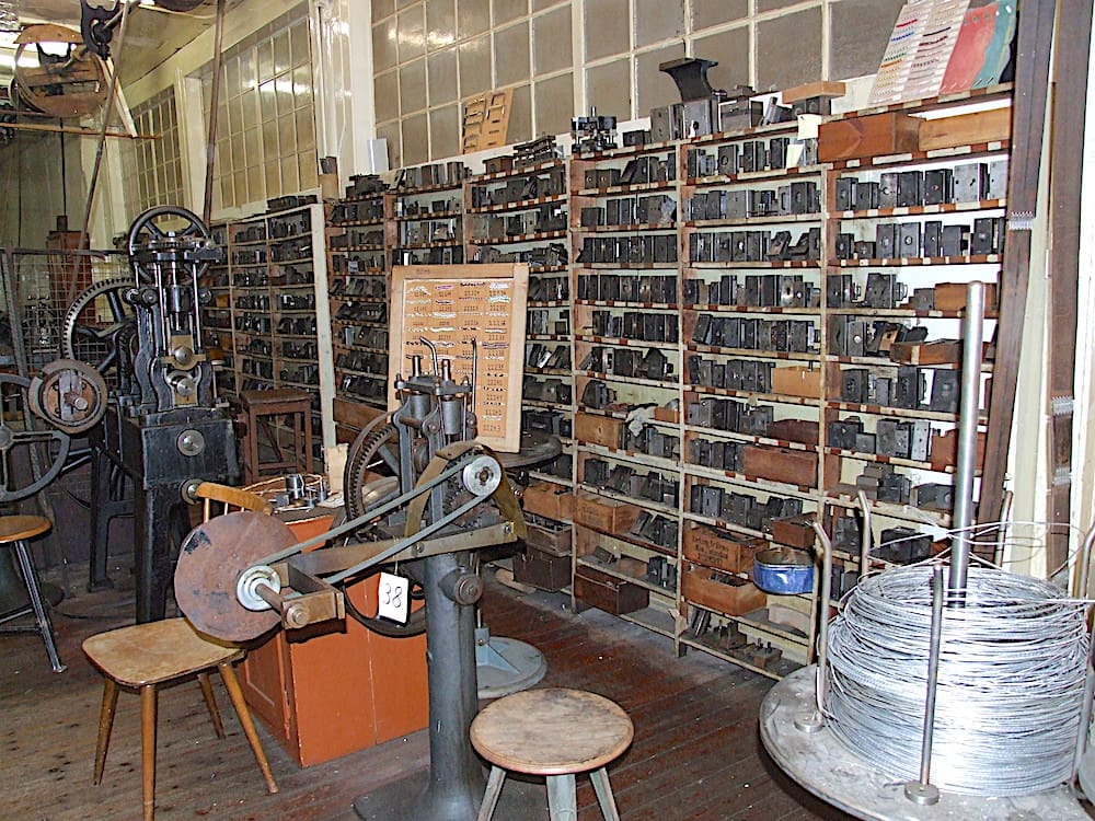Another section of the original factory showing cases full of dies and presses used to make necklaces and brooches.