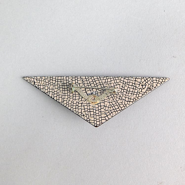 Vintage layered geometric brooch made by Lea Stein in 1968. Signed to the V safety clasp.