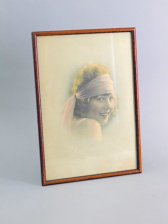 Pretty flapper girl photo mounted in a wood frame.
