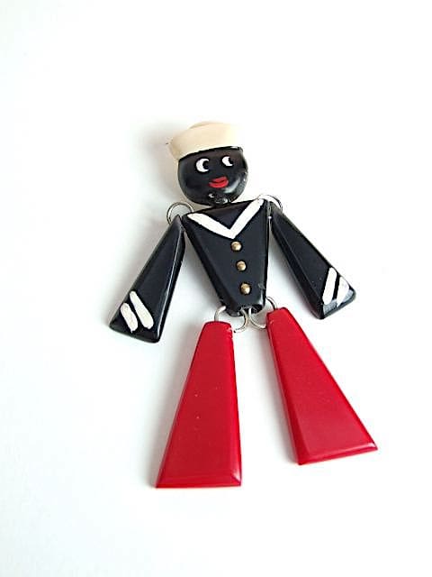 Original and very rare French galalith articulated sailors brooch.