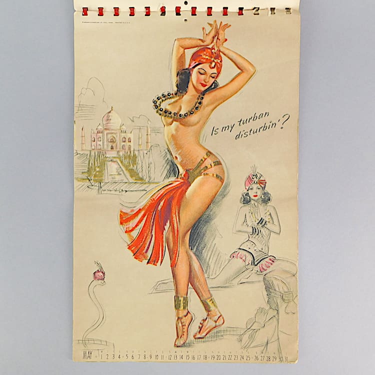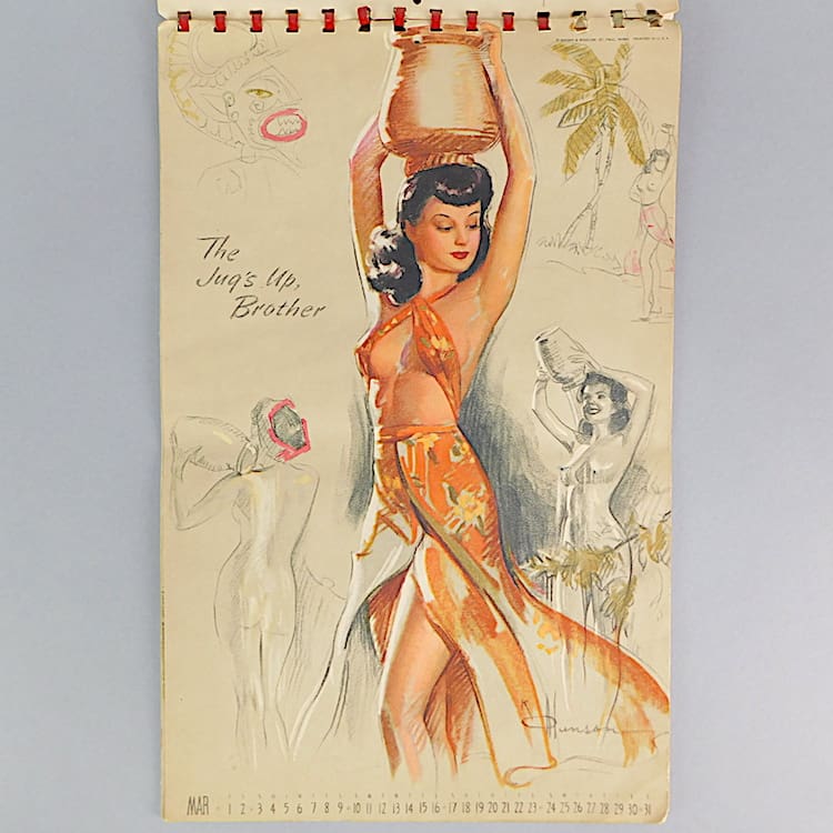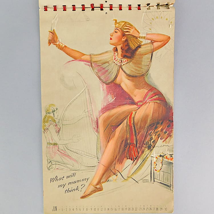 An original American calendar from 1946. Designed by Knute Munson, one of the famous pin up artists and titled – Artist’s Sketch Pad. It consists of 12 pages – each month of the year – and is illustrated with pin-ups on each page. Unframed. Price for complete calendar. Please enquire for the rest of the pictures.