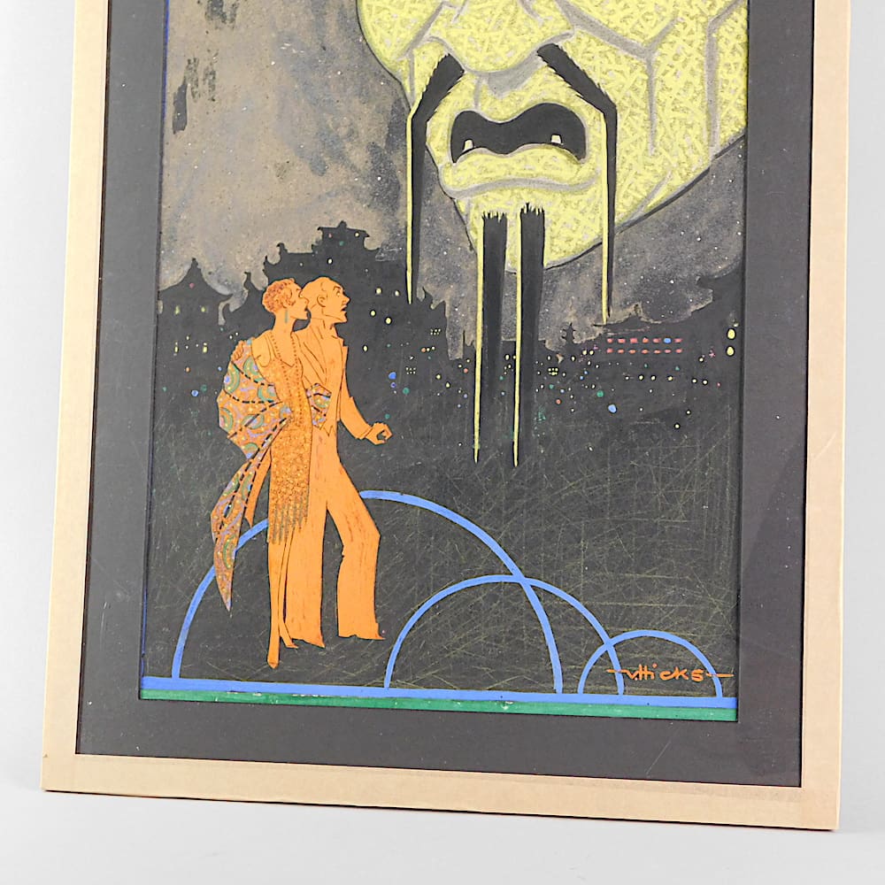 A unique and original hand painted work of art created for a theatrical performance. Signed V. Hicks.